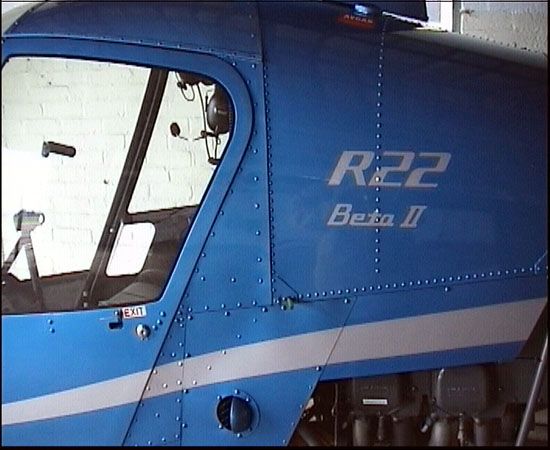 Everyone did a one hour flight in a Robinson R22 (shown here are its fuselage aswell as two shots of james' takeoff)