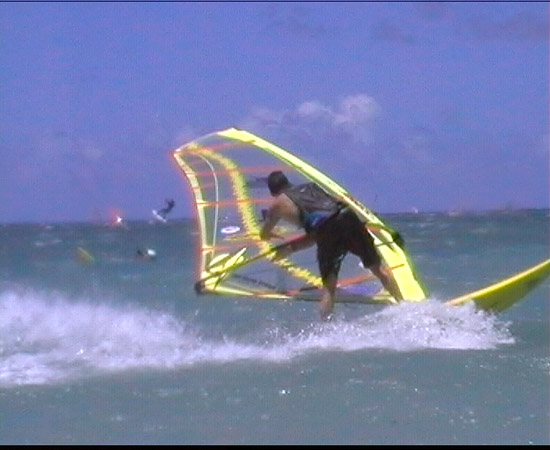 an amusing detail in the distance is the airborne kitesailor - there's more of them than ever before as it appears to be in danger of becoming a real sport - there's even another kitesailor in the water right in front of steve.