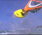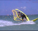 if you saw the jumpgybe page, you'll see what I was trying - this photo shows olly stylin' it as its meant to be - notice the left foot just across the centreline in front of the mast
