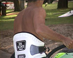 here's our two resident idiots - one grinning maniacally, the other taking some air on a small starboard ramp.