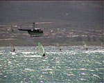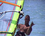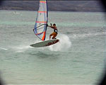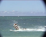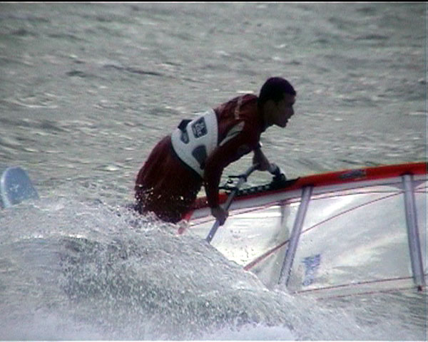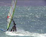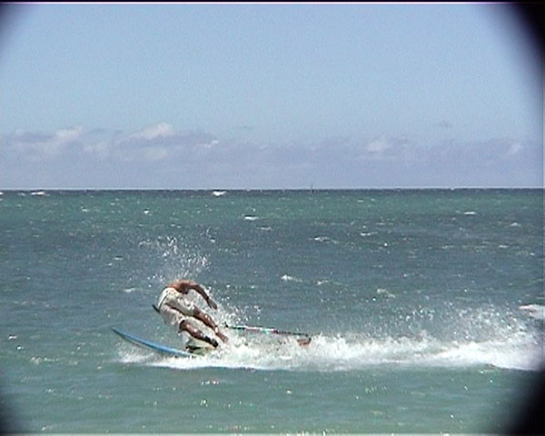 any laydown sail attempts have the potential to end like this photo, with the sailor getting flicked over the front of the board as the mast strikes the water - the chop on the inside didn't help.
