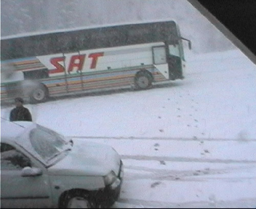 john kettley (weather god and erstwhile subject of lame pop songs) seemed to be smiling on us again as we arrived at the resort in falling snow for the second time in one year. bus had to stop for half an hour for gabriel to call his boss and gloat (and to put on snow chains)