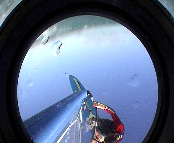 the left hand shots shows me gybing onto a wave (the tape on my left hand is clearly visible as I sliced my hand open on a bare piece of aluminium holding the camera onto the mast.
