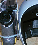 I've never sailed with a helmet before - but I got a standard Gath model and drilled two holes in it. the closeup shot clearly shows the polycarbonate sheet attached to the outside of the helmet.